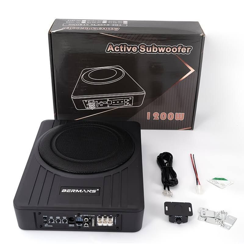 Subwoofer Amplifié pour Voiture - Bermans, 10", 1200W Max, Basses Puissantes, Subwoofer voiture, Caisson plat voiture, Haut parleur voiture, Caisson