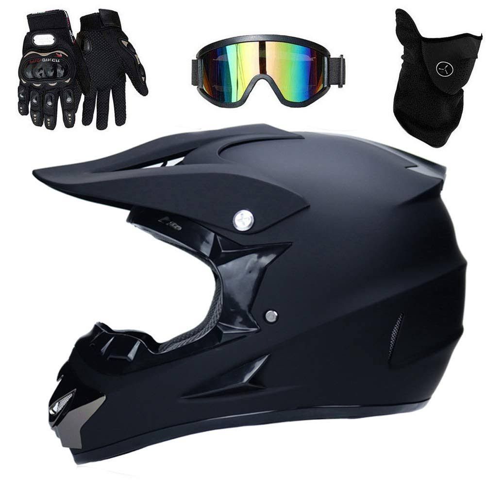UIGJIOG Casque de Moto pour Enfant Motocross Cross Off-Road D. O. T Homologué Noir Adulte Casque Cross avec Gants/Lunettes/Masque